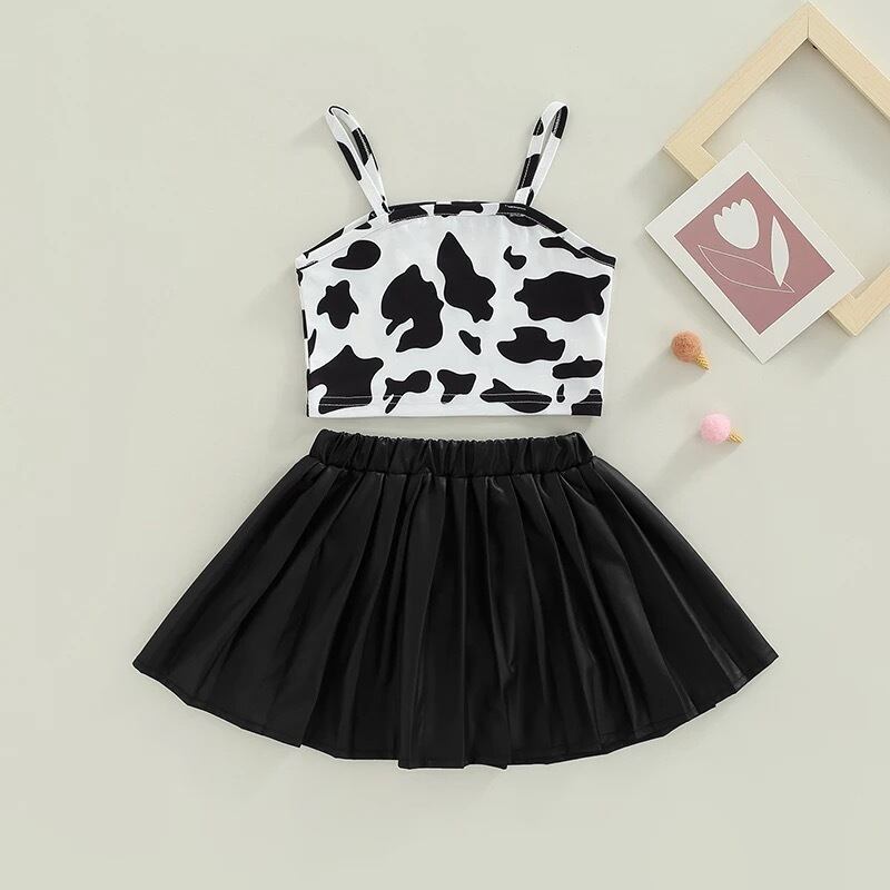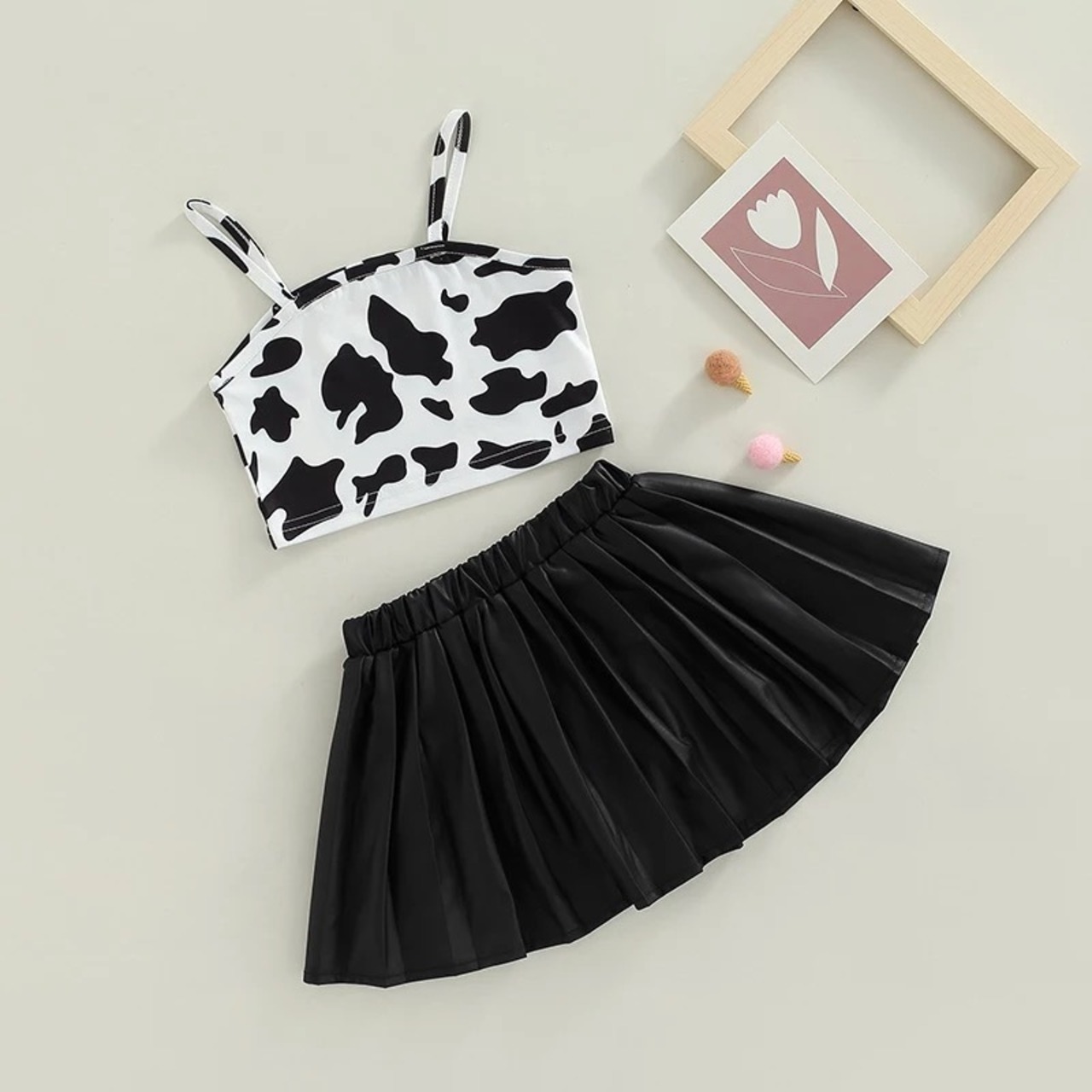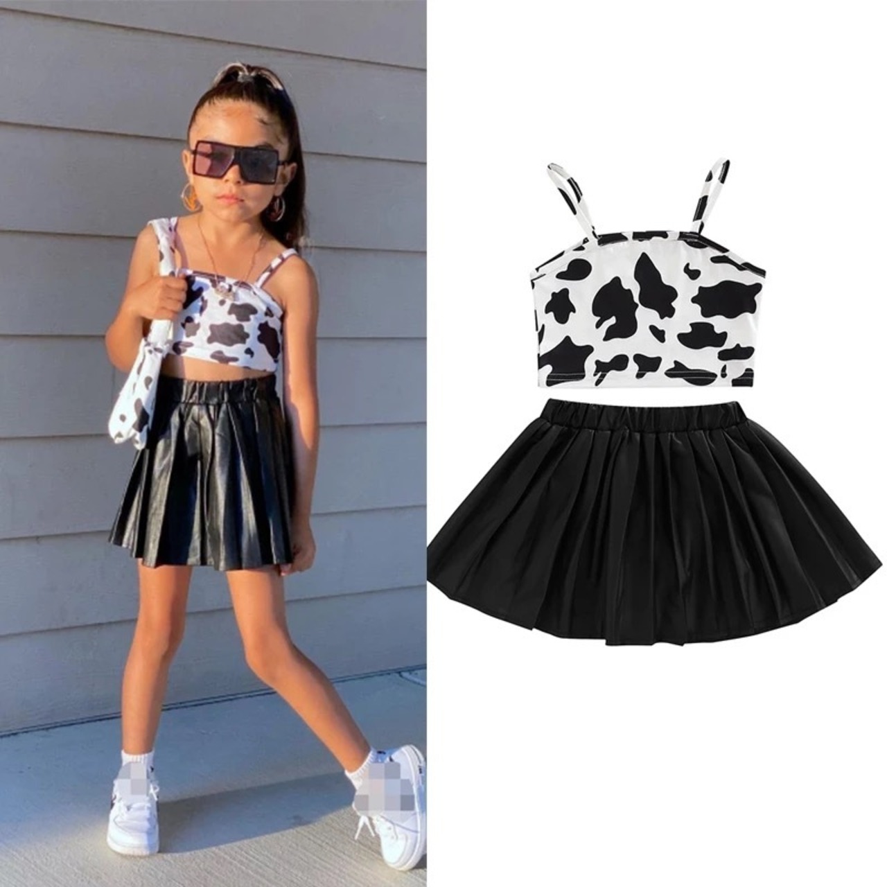 ノースリーブとレザープリーツスカートのセットです❁*。